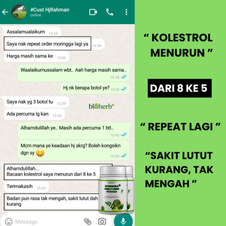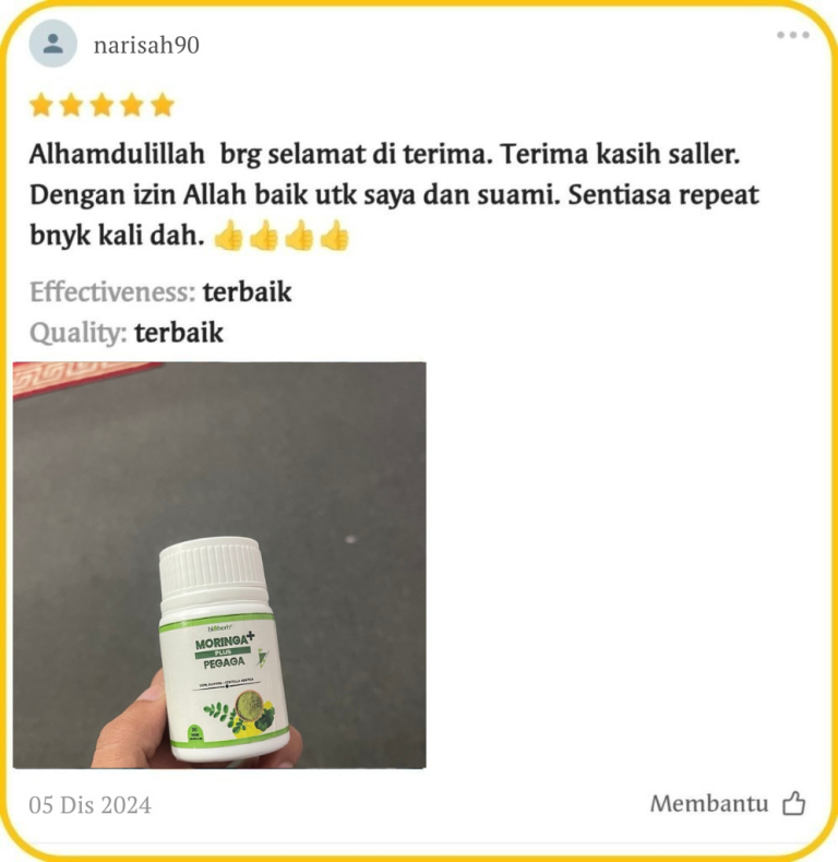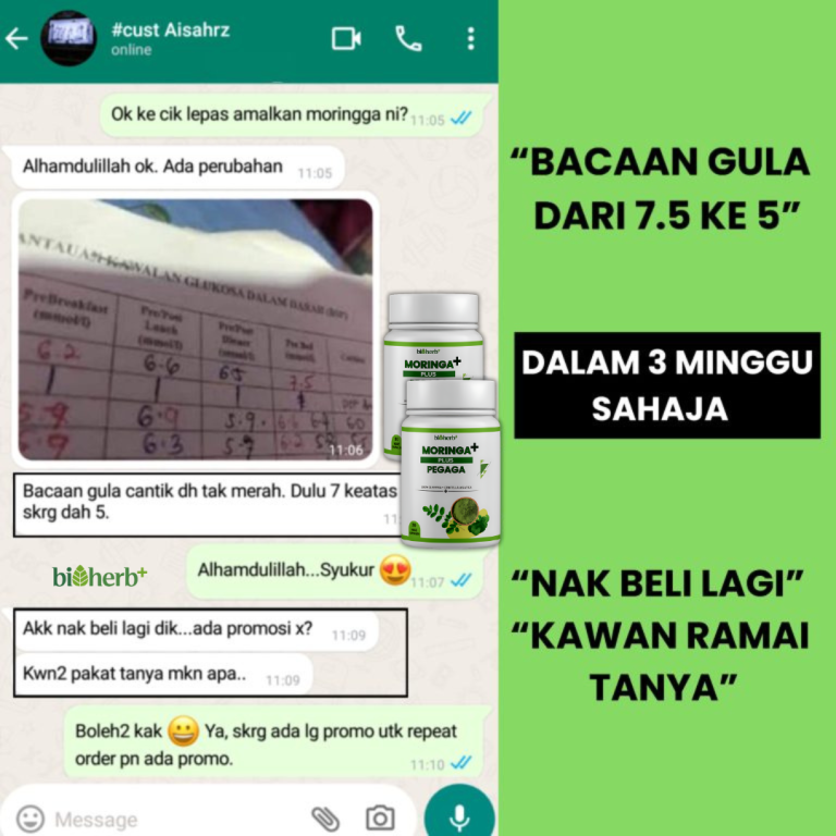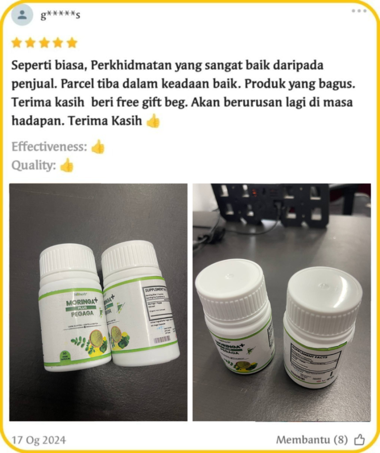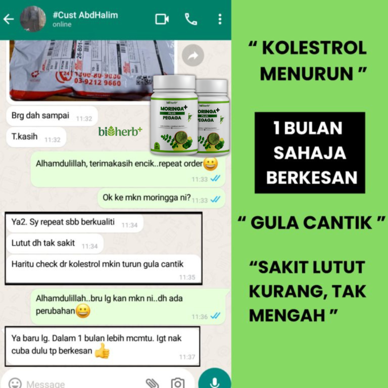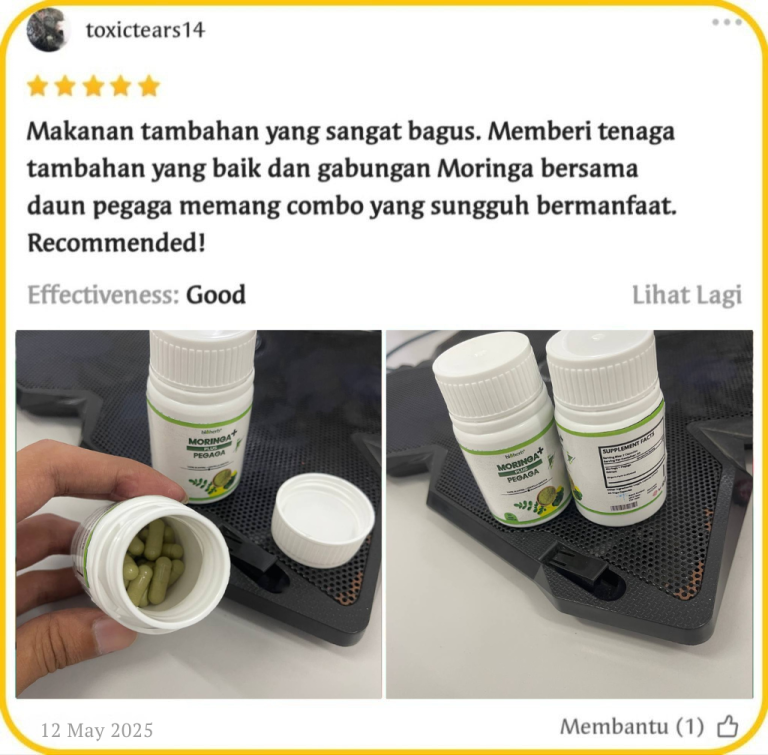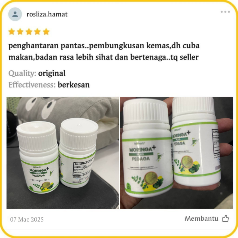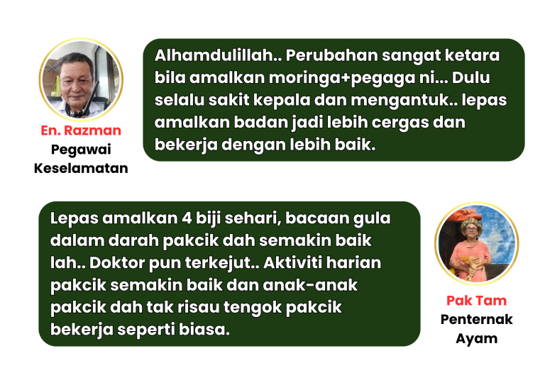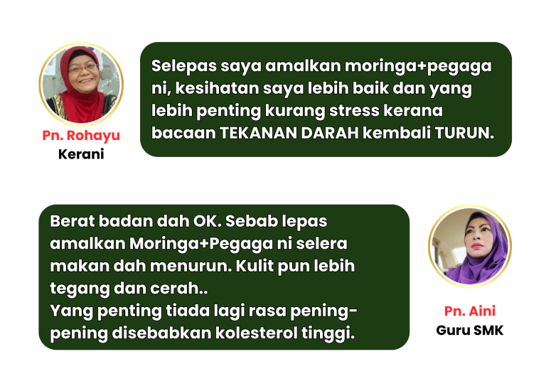 Disclaimer: Testimonials found at https://sihat2u.online/ and/or from Moringa+Pegaga are unverified results that have been forwarded to us by users of the product. The results may vary for each individual and are not intended to represent or guarantee that anyone will achieve the same or similar results within a specific period of time.