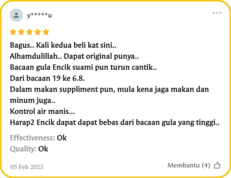 *PENAFIAN: Keberkesanan produk ini bergantung kepada kesesuaian individu. Setiap hasil dari penggunaan adalah berbeza bagi setiap individu. Produk ini akan memberi kesan terbaik sekiranya pengguna mengamalkan dengan cara betul berdasarkan banyak testimoni yang diperolehi. Kita berikhtiar, tuhan yang menyembuhkan.